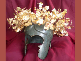 Особен интерес сред златните предмети представлява златната апликация на глава на богиня. Тъй като стана дума за бойна украса, това със абсолютна сигурност е изображение главата на богинята на войната Атина, носейки боен шлем (коринтски тип) с украса от два бойни коня отстрани.